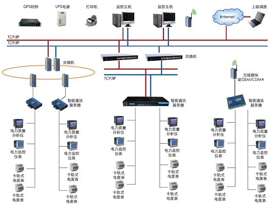 現場工業儀表通過RS485組網,進入智能通訊管理機。主控室研華工控機安裝OPC軟件及西門子WINCC軟件,用于顯示電壓、電流、電能等用電數據,WINCC軟件自動生成每天用電表報表并單獨存儲。